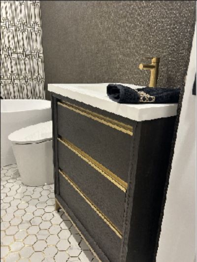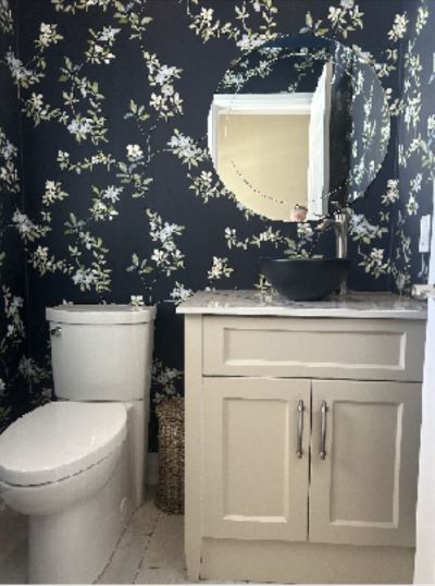 A cute little bathroom reno. Got rid of an old pedestal sink, turned a small