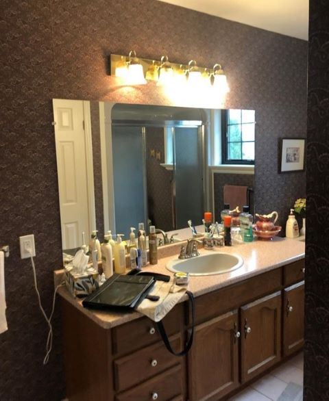 A cute little bathroom reno. Got rid of an old pedestal sink, turned a small