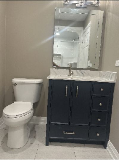 A cute little bathroom reno. Got rid of an old pedestal sink, turned a small