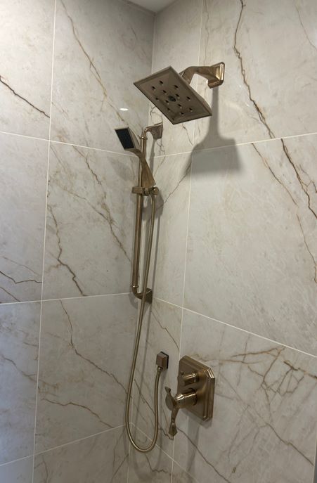 Bath reno includes large curbless shower. |