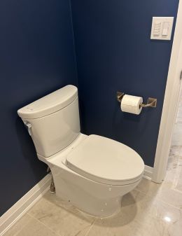 Custom under-cabinet lighting (at floor) for those middle of the night trips to the washroom. |